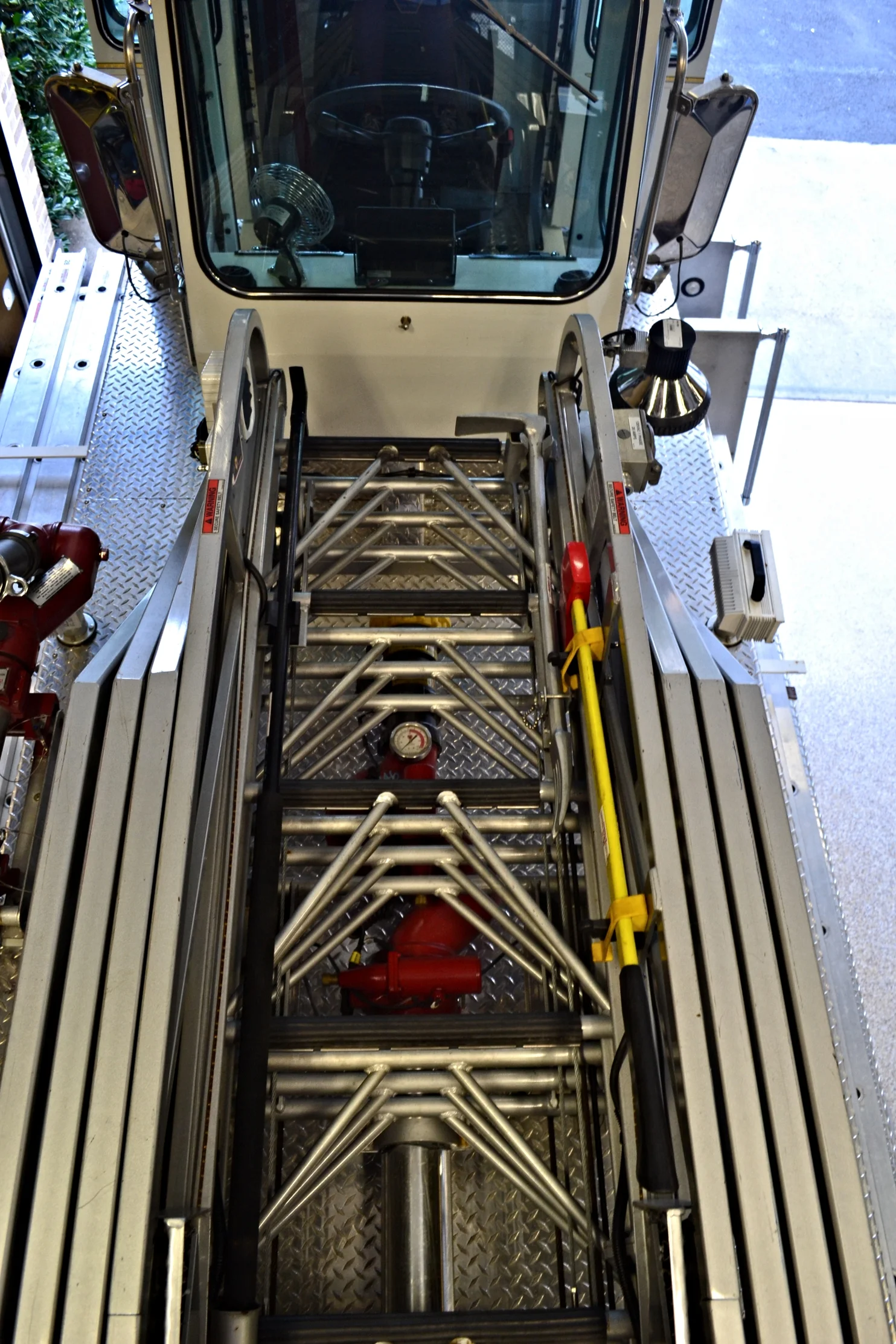 There is a lot of equipment on this aerial tip that could obstruct some of the tiller operator’s sight lines. (Click to enlarge)